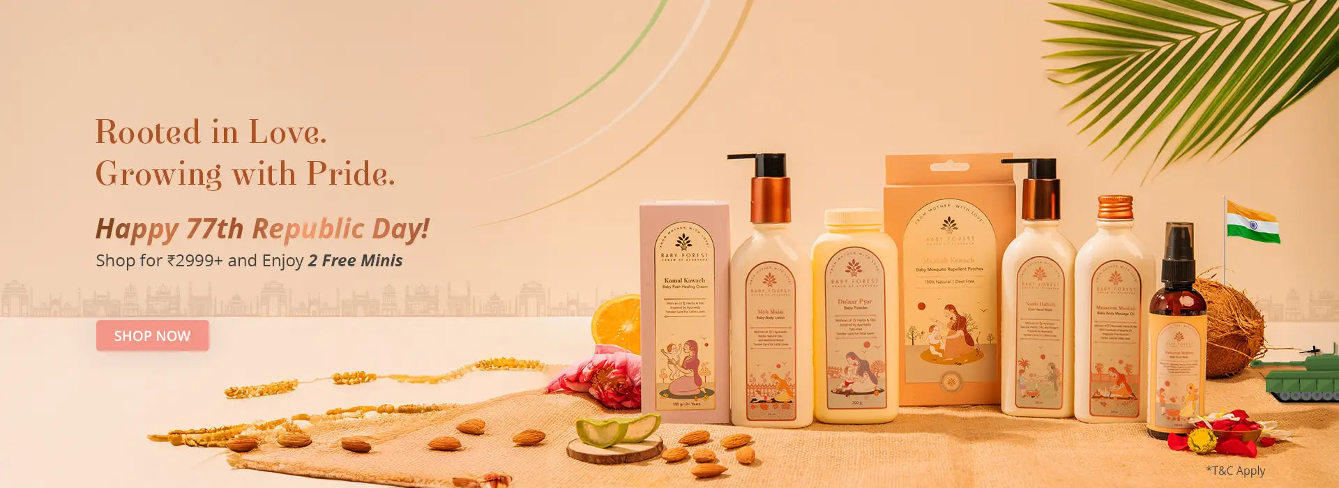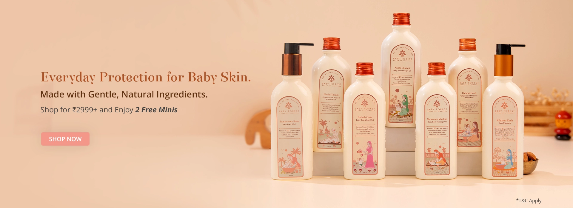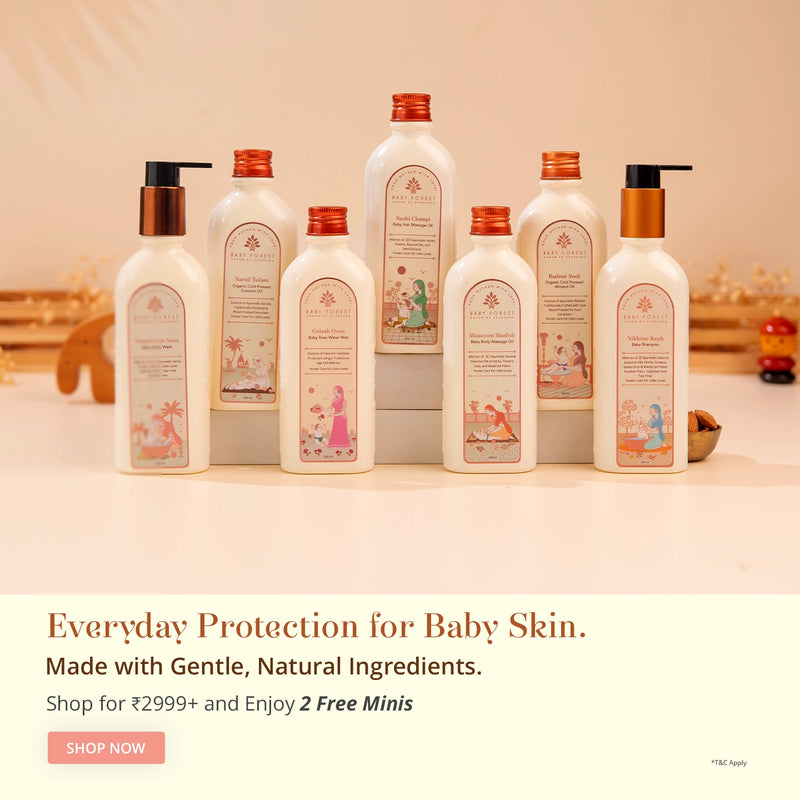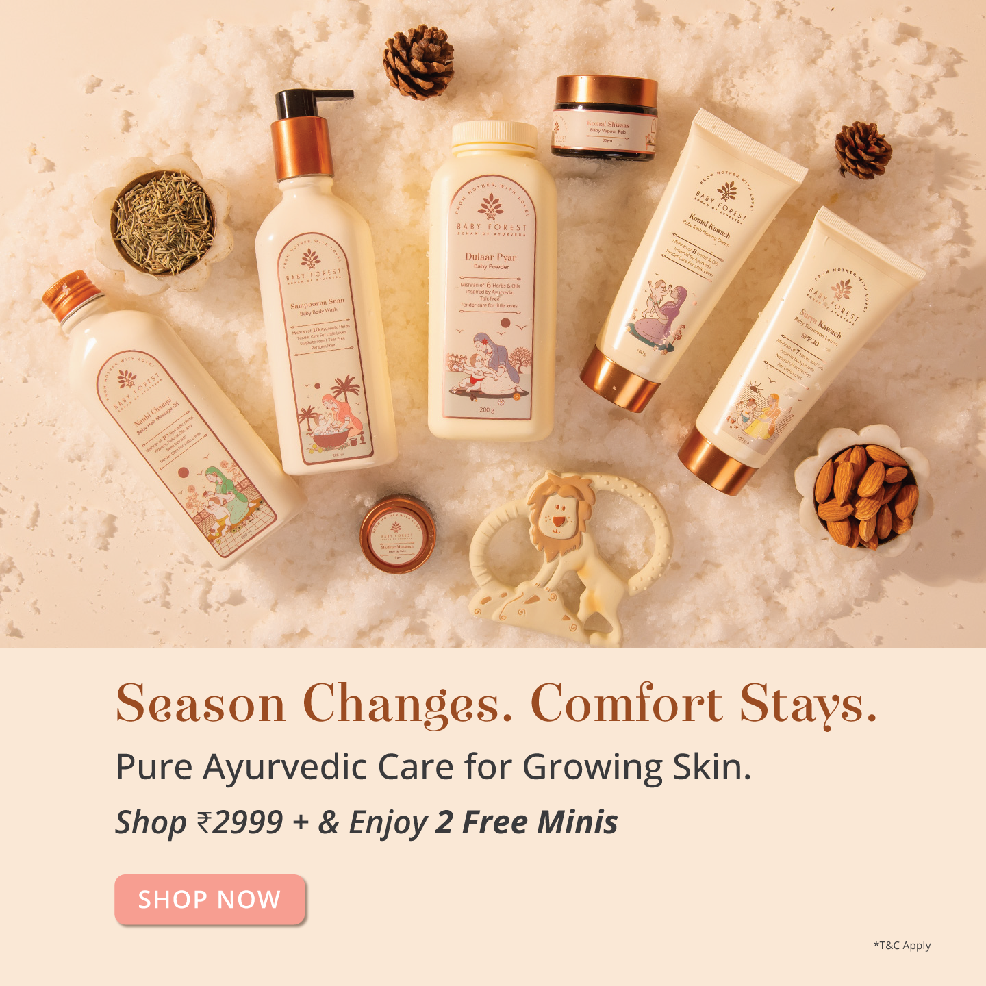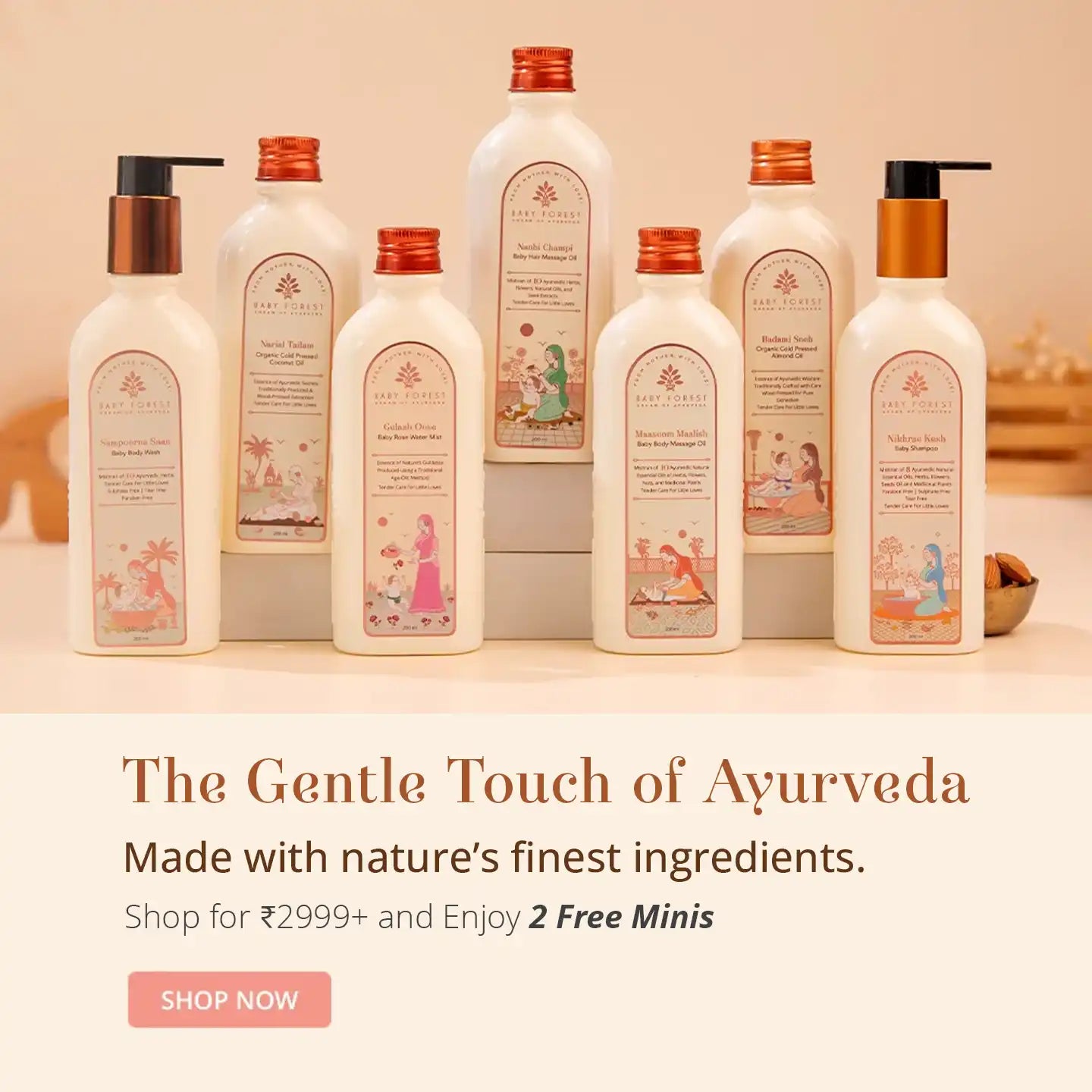 Ethical and enriched essentials crafted from the age-old golden knowledge of Ayurveda for the holistic development of your precious bundle of joy!