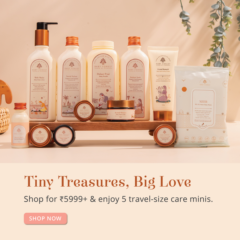 Ethical and enriched essentials crafted from the age-old golden knowledge of Ayurveda for the holistic development of your precious bundle of joy!