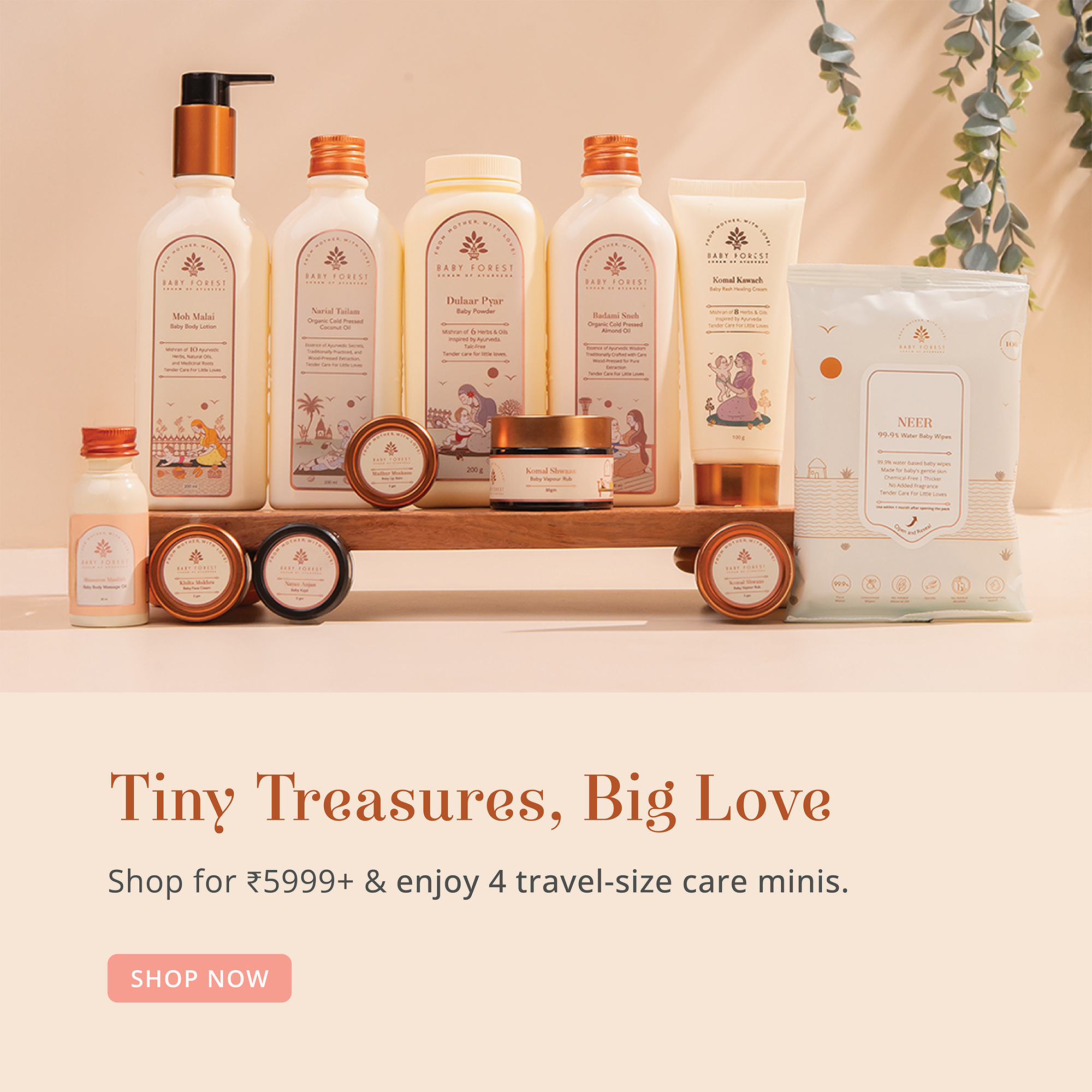 Ethical and enriched essentials crafted from the age-old golden knowledge of Ayurveda for the holistic development of your precious bundle of joy!