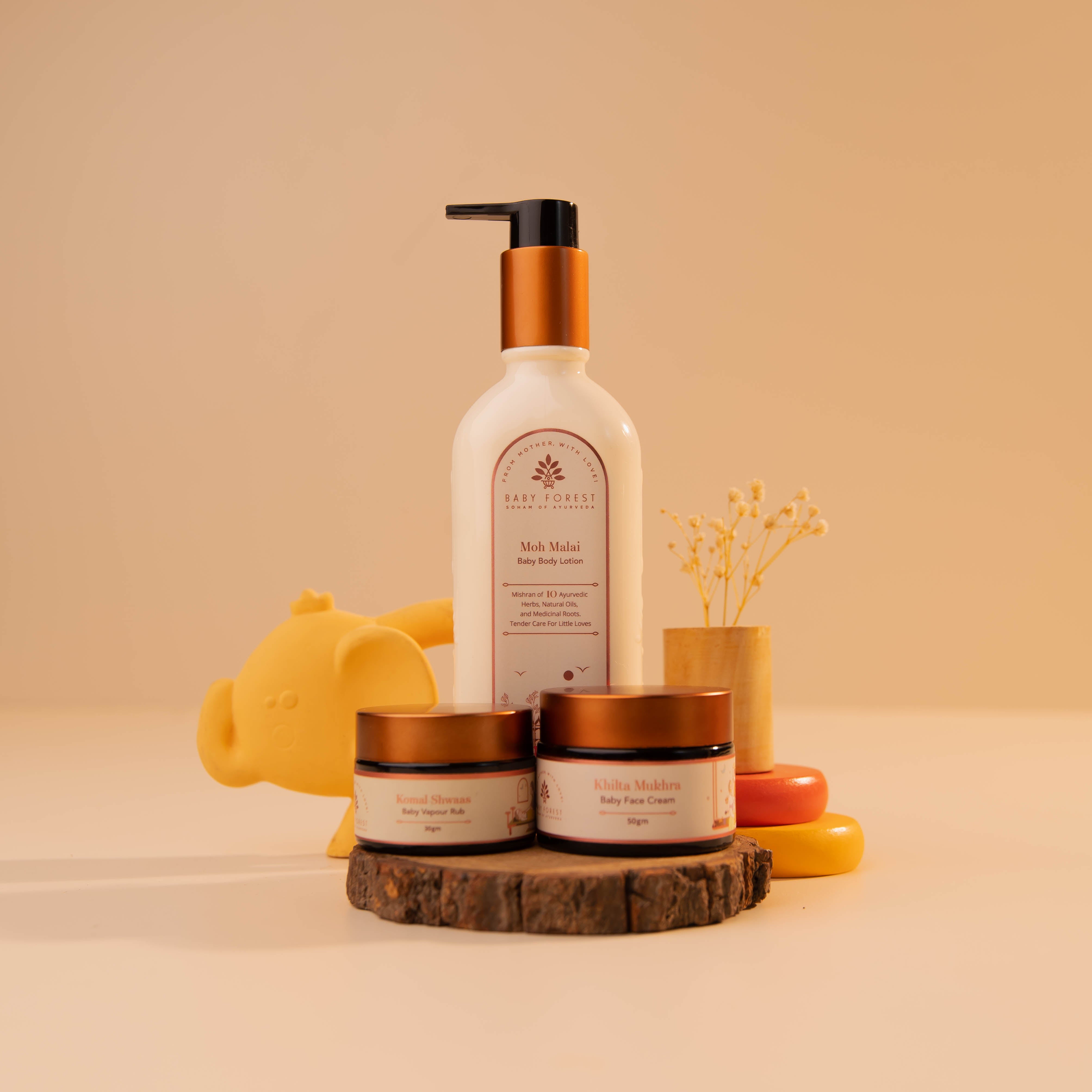 Experience the rooted luxury of nature, crafted formulations enriched with pure ingredients inspired by Ayurveda for the best baby products for newborns.