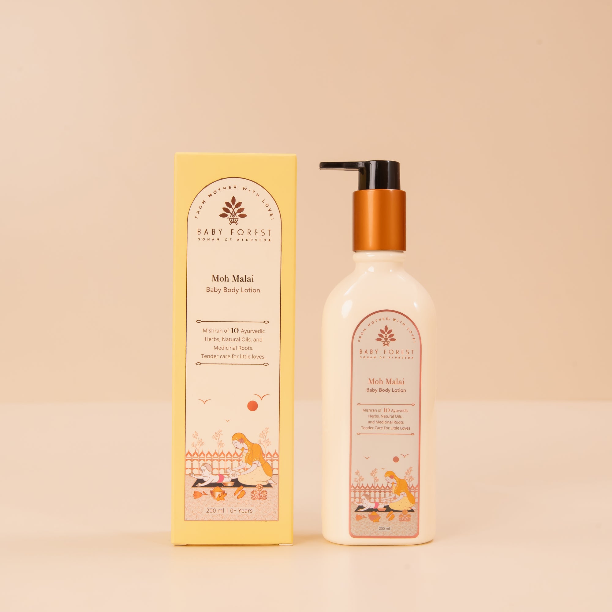 applying Moh Malai Lotion to nourish and soothe your baby’s skin. Together, they create a cozy,