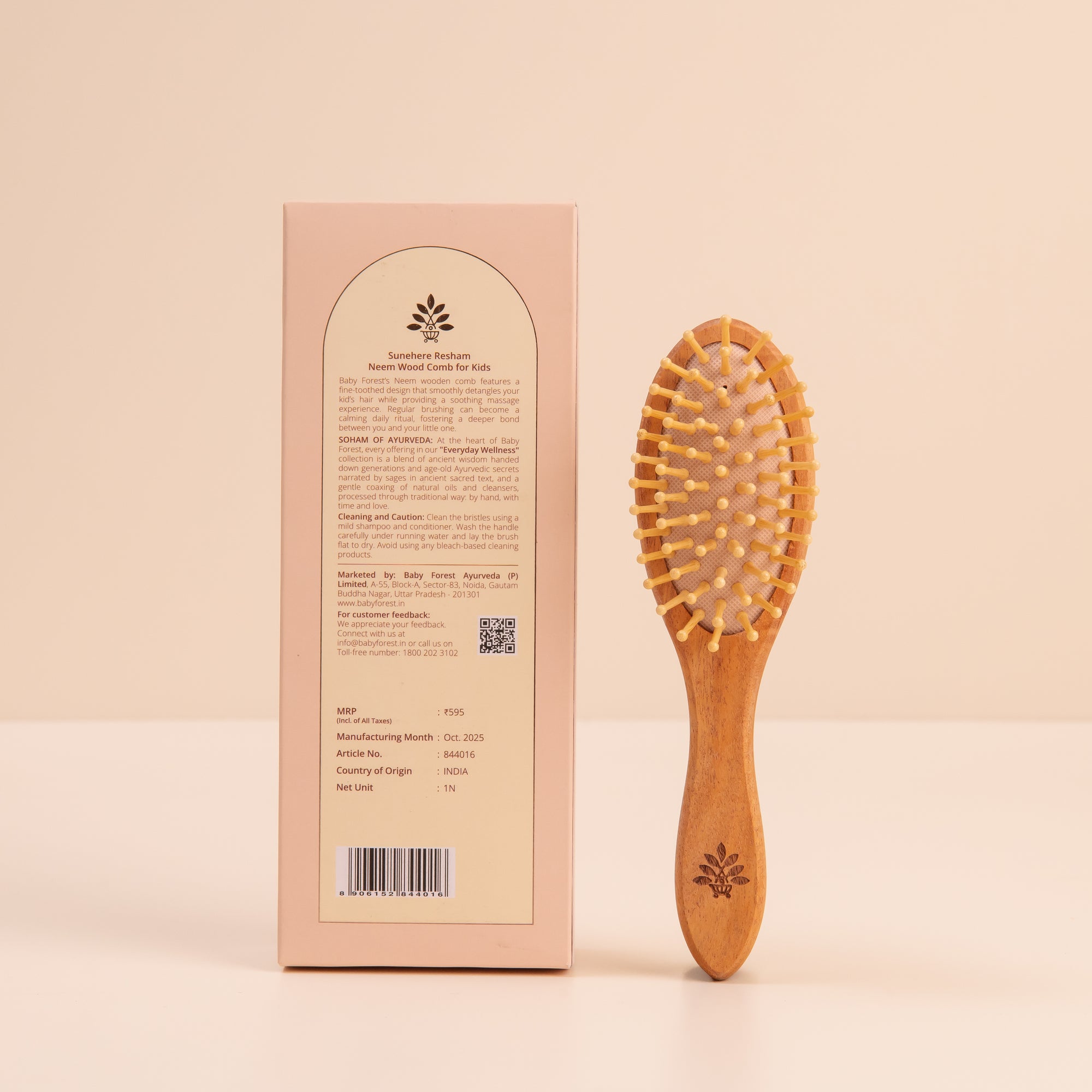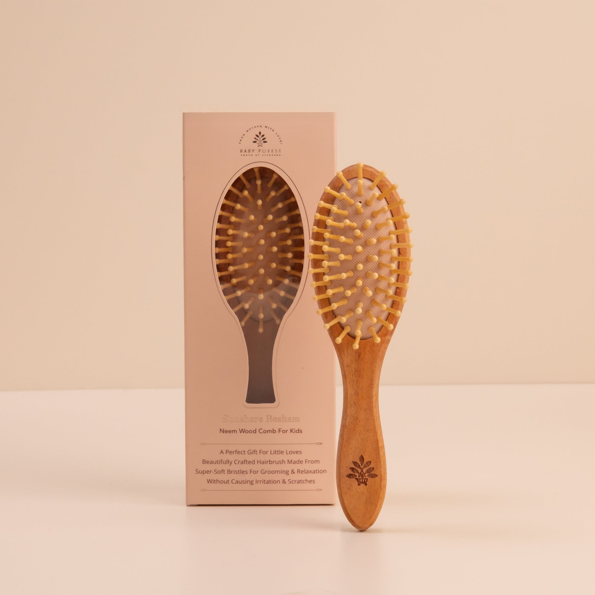 Yes. The fine-toothed neem wood comb paired with soft, rounded bamboo bristles works beautifully on all hair types, including long, wavy, or thick toddler hair. It gently detangles without pulling, making grooming comfortable even as your child’s hair grows longer.